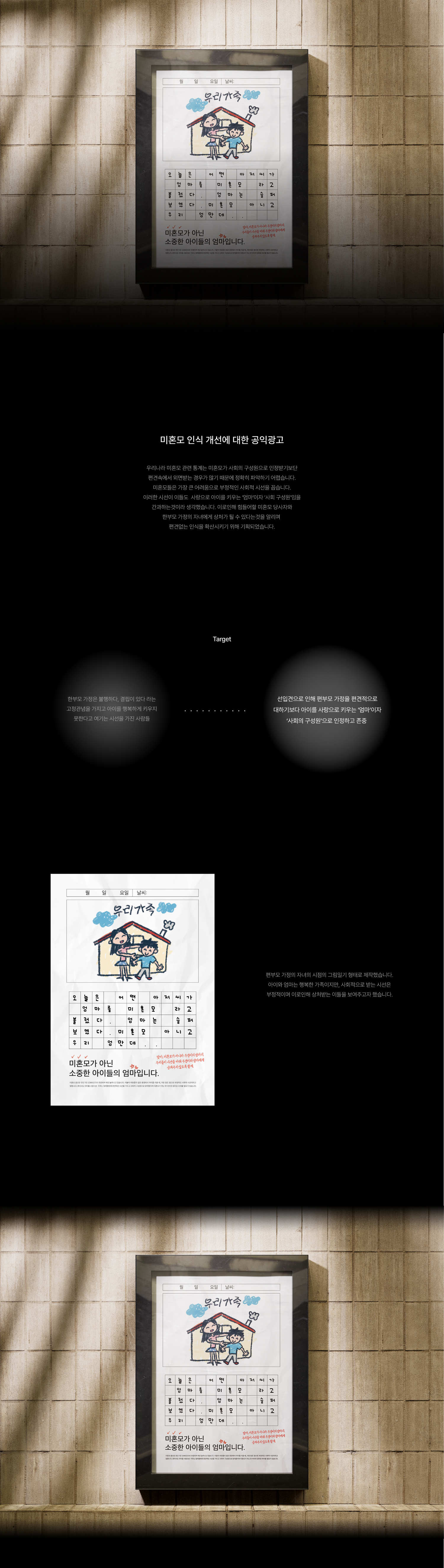 혼자서라도 아이를 낳아 키우는 미혼모 에게는 안좋은 시선과 편견이 따라붙는다. 한국사회에서는 미혼모는 문란한 여자로 인식돼기 때문에 사랑으로 아이를 키우는 엄마라는 사실이 가려지는 것 같다. 결혼의 여부가 중요한것이 아닌 엄마와 아이간의 사랑을 보며 편견이 아닌 본질을 보길 바라는 광고다.