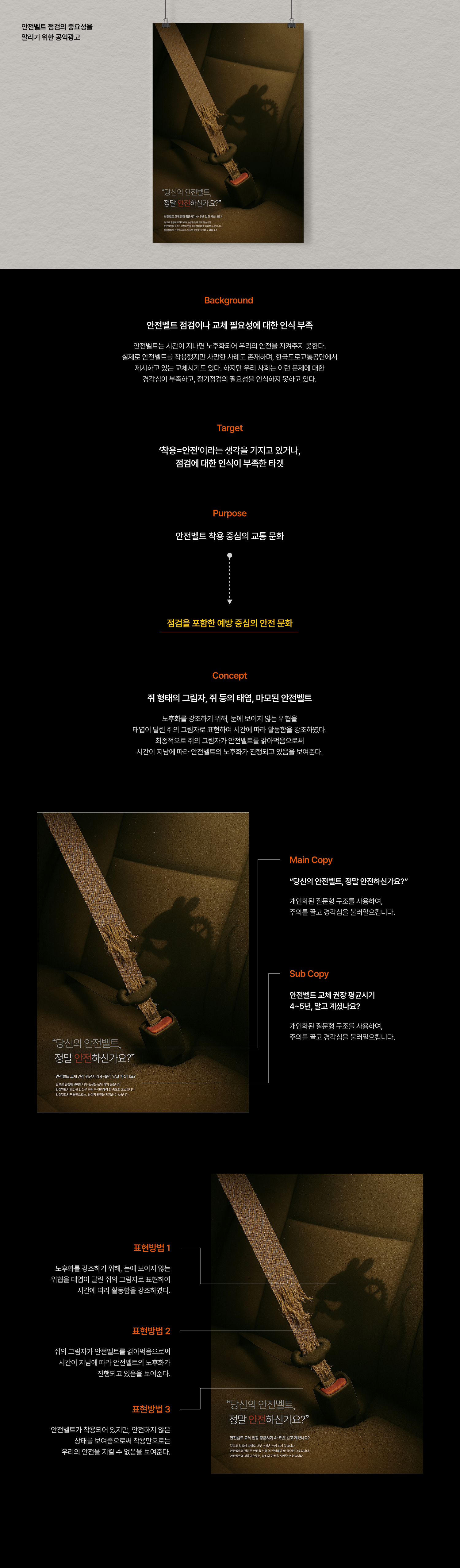 안전벨트 점검의 중요성을 알리는 공익광고 포스터