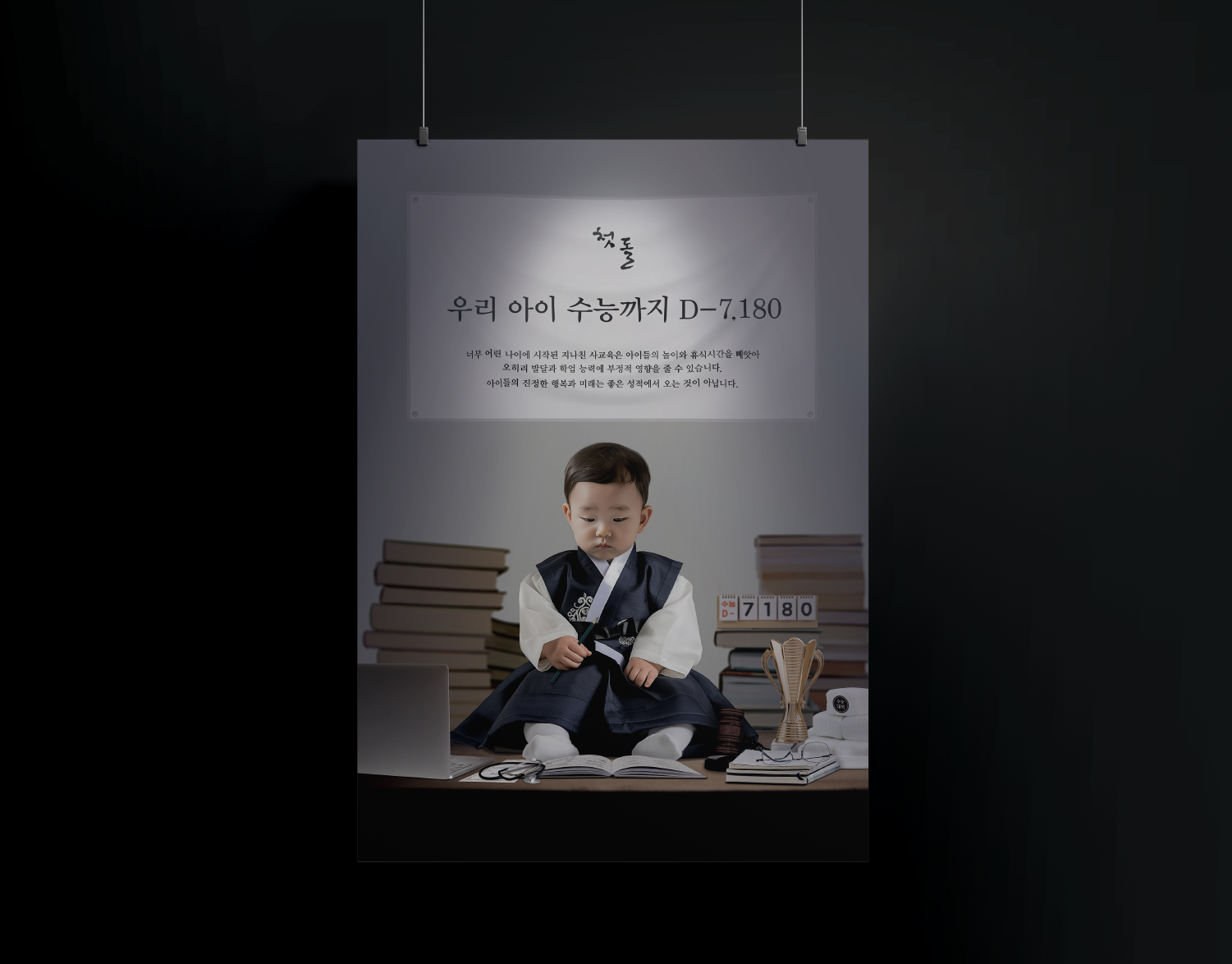 한국의 치열한 경쟁사회 속에서 태어난 아이들은 좋은 대학, 좋은 직업을 갖기 위해 수능이라는 결과에만 집중하는 길에 놓여진다. 이에 영유아들이 지나친 사교육 시장에 놓여지게 된 상황을 비판하고자 한다.
